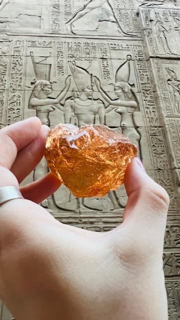 Este Andara en forma de corazón, trabajado y cargado energéticamente en un templo sagrado de Egipto, guarda la fuerza y la protección de la Diosa Isis, guardiana de los misterios y de la sabiduría ancestral.